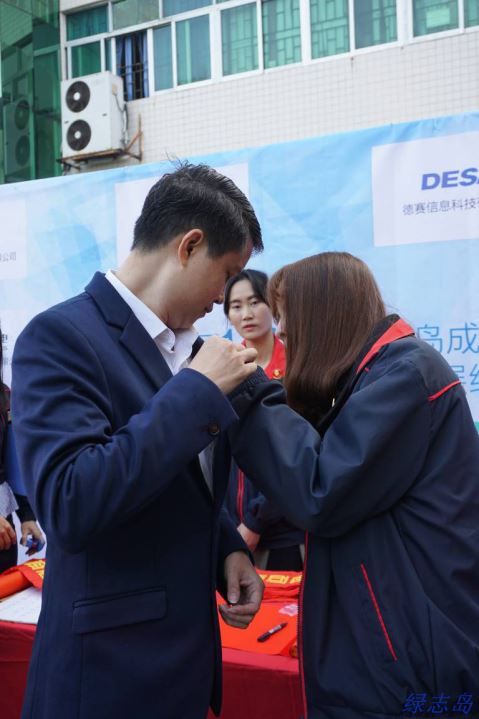 清晨綠志島的迎賓團隊已準備好禮品,人員也全部早早的就位等待賓客的到來。