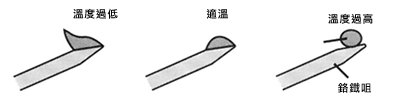 錫是低溫易熔及易老化的焊料,溫度低時,錫呈現(xiàn)膠狀不黏,令線路 板的銅箔與零件腳造成假焊。溫度正確適中時,在焊咀的錫呈半圓粒狀,有反光面,是黏著力最佳的時候,迅速將零件腳與底板電路焊接。溫度過高時,錫呈圓粒 狀,錫點表面的色澤呈啞色,有縐紋,表示錫已老化,會造成假焊點出現(xiàn)。所以,從鉻鐵咀的錫粒形狀可知何時焊接是最好的時候,制作的成功率是怎樣。新藝圖庫